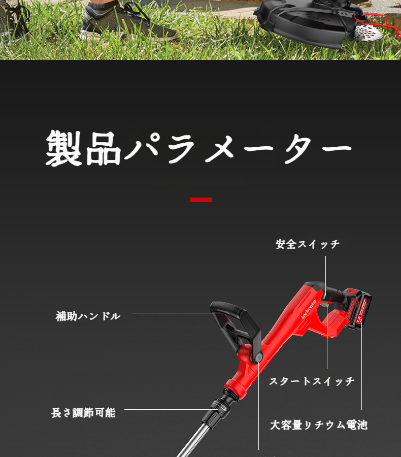 ホーム手持ち型リチウム充電式トリマー雑草ワッカー 充電式リチウム草刈機ブラシレスガーデントリマー雑草ワッカー